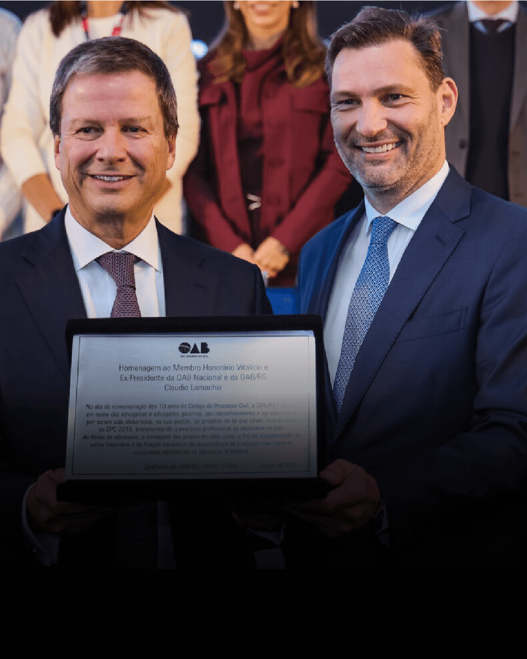 Com a presença de todos os presidentes dos Tribunais, do Procurador-geral do Estado, do Ministério Público e da Defensoria Pública e diante de um auditório lotado, nosso sócio Cláudio Lamachia, recebeu uma justa e emocionante homenagem em reconhecimento por sua atuação decisiva na construção de um CPC mais justo, eficiente e respeitoso com a advocacia.