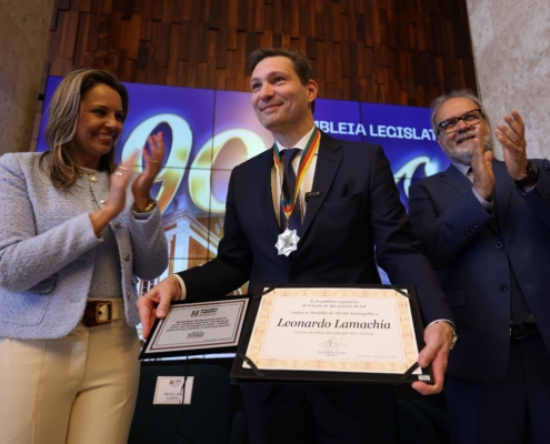 Nosso sócio, Leonardo Lamachia, recebeu no último dia 11 de agosto, no Salão Júlio de Castilhos, a Medalha do Mérito Farroupilha, que é a mais alta honraria concedida pela Assembleia Legislativa do RS. A homenagem destaca sua trajetória na advocacia, o perfil de liderança e a atuação firme em defesa da lei, da justiça, das liberdades, da democracia, bem como sua contribuição para a sociedade gaúcha em diversas ações ao longo de sua atuação associativa e profissional.